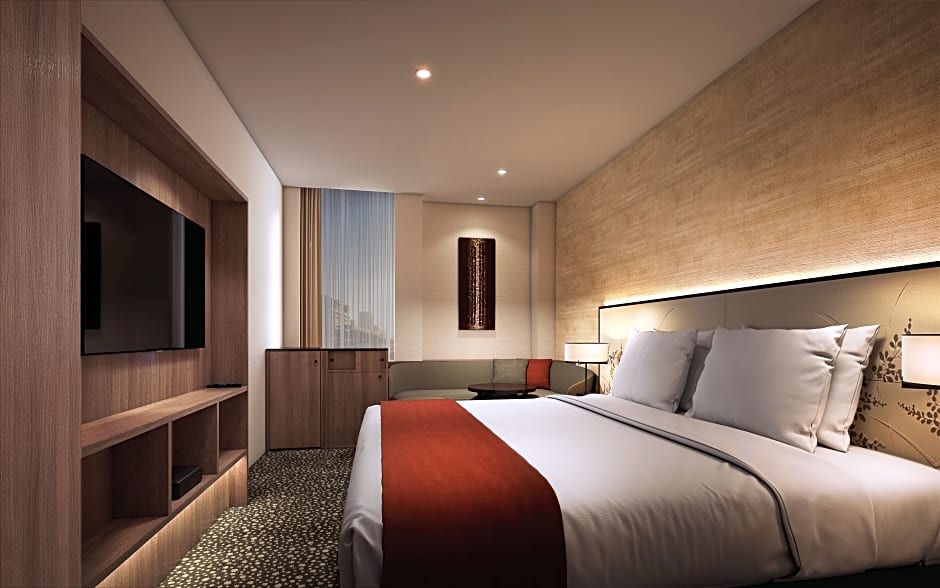 Deluxe King is 323 square feet and includes a king-size bed 150-183 width.